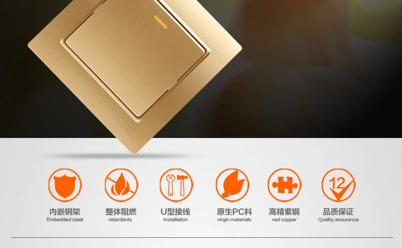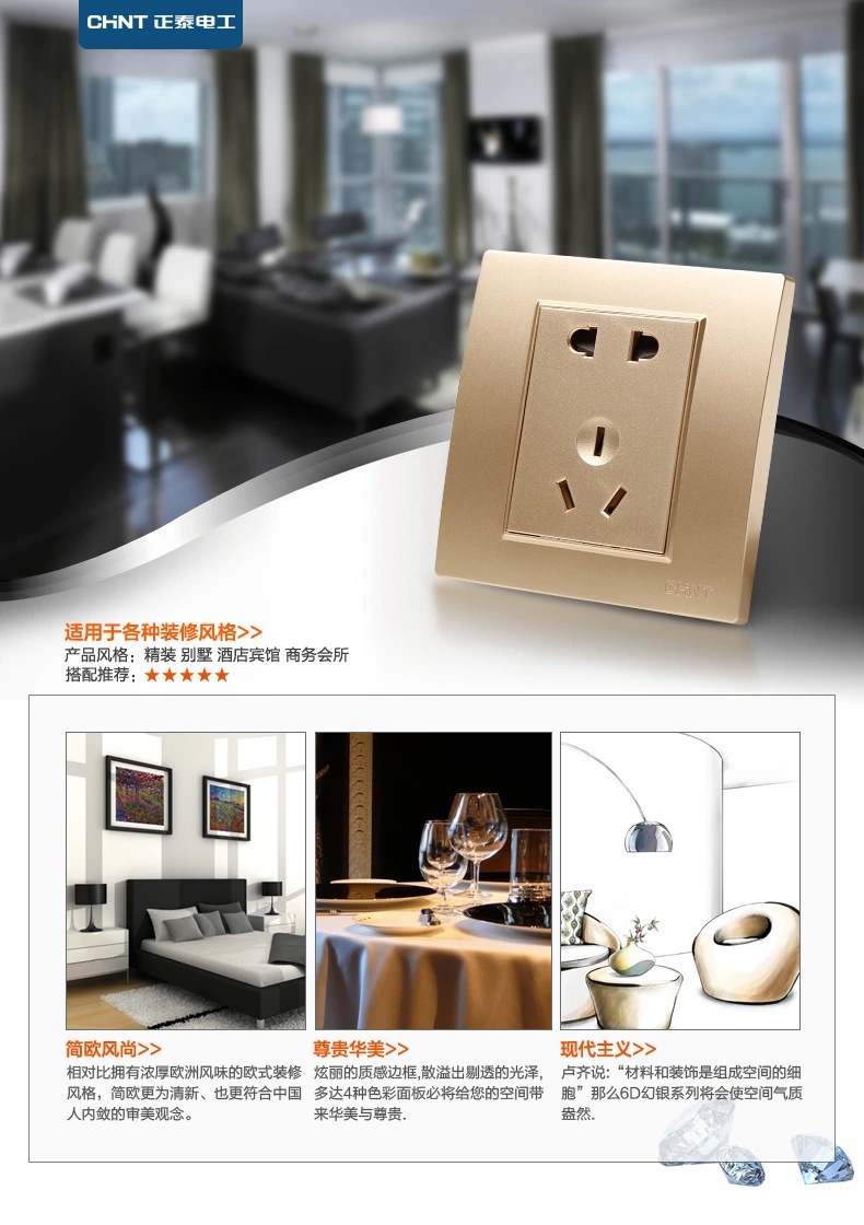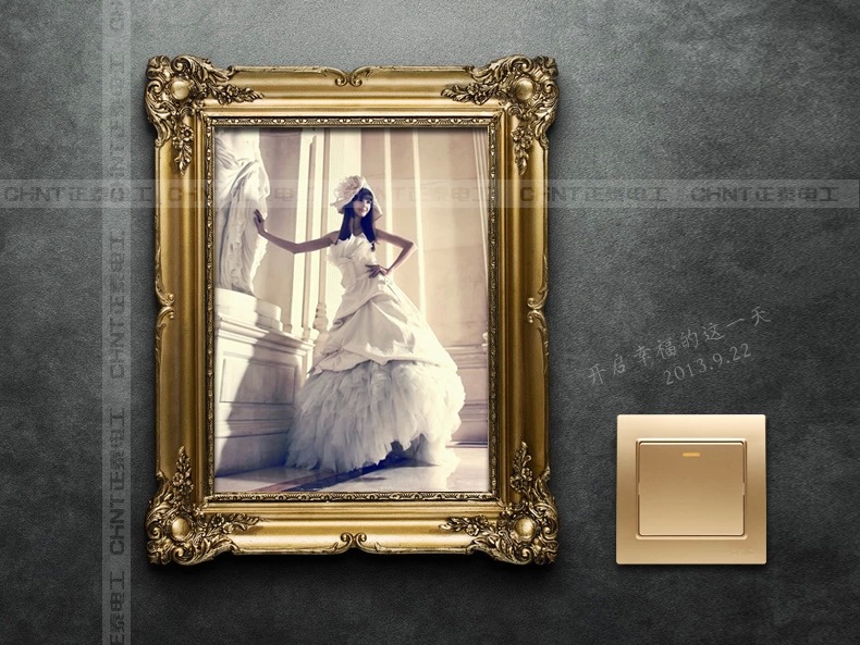 正泰开关插座钢架墙壁开关插座 NEW7L香槟金色 墙面插座 五孔插座