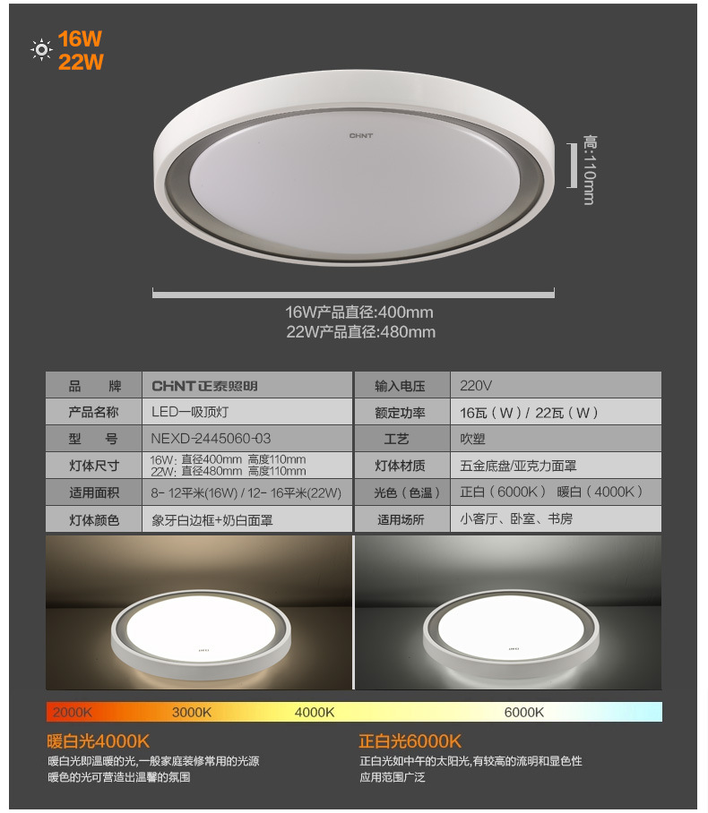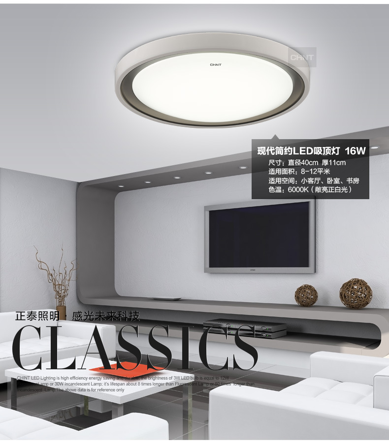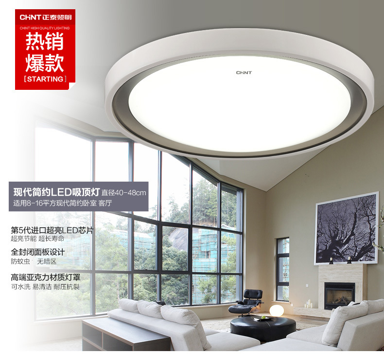 正泰led灯大气卧室吸顶灯 现代简约客厅灯具温馨房间灯圆形灯饰